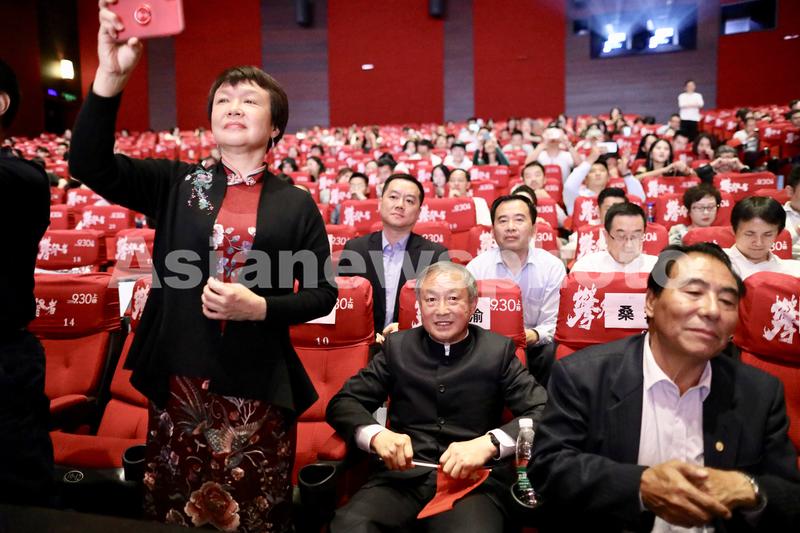 2019年9月27日,在上海影城,夏伯渝(中)与中国登山队原队员桑珠(右一)等共同观看电影《攀登者》。