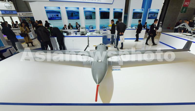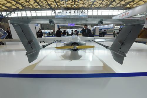 2019年12月3日,国产新型舰载小型固定翼无人机亮相在上海举行的2019中国国际海事会展,吸引了不少观众。