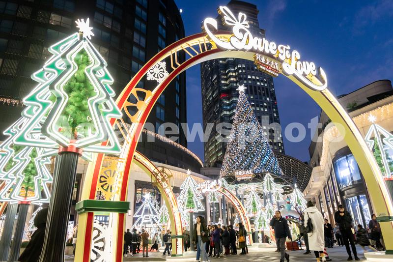 2019年12月5日,上海南京西路一商业广场上圣诞节气氛浓厚。