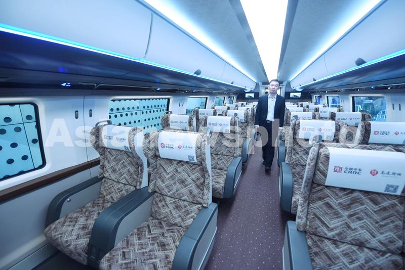 图片说明:2019年12月6日,杭州市民在参观时速600公里高速磁悬浮列车车厢。