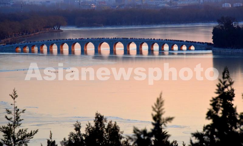 北京:颐和园十七孔桥现“金光穿洞”美景 查看组图