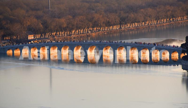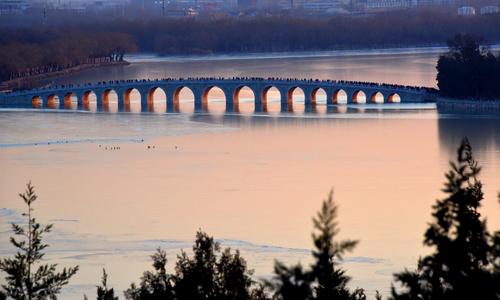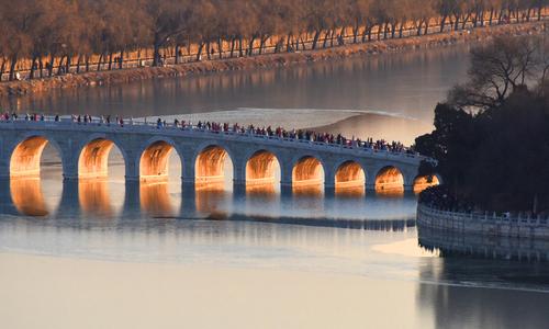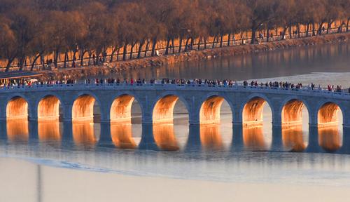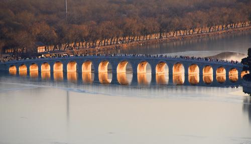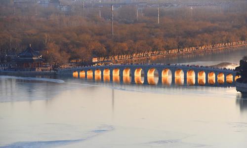 北京:颐和园十七孔桥现“金光穿洞”美景 查看组图