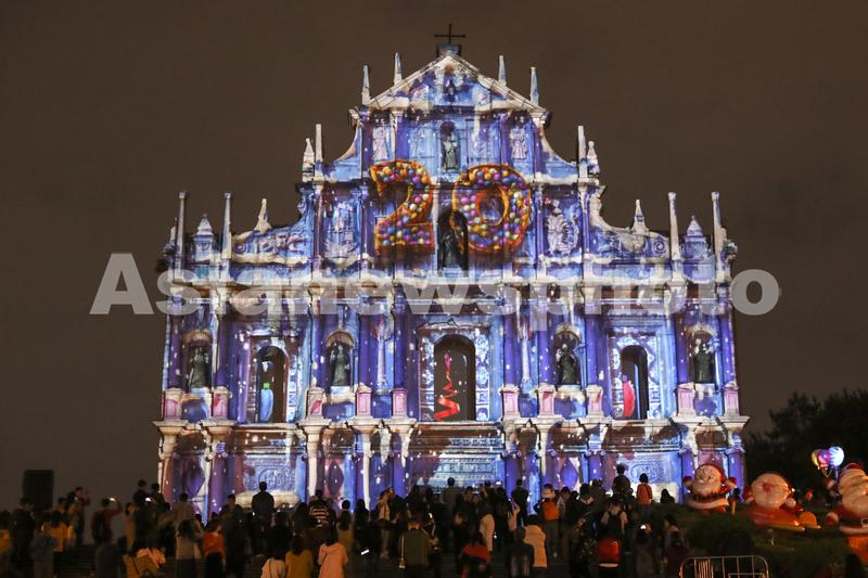 澳门光影节光雕表演为大三巴牌坊披上彩衣 查看组图