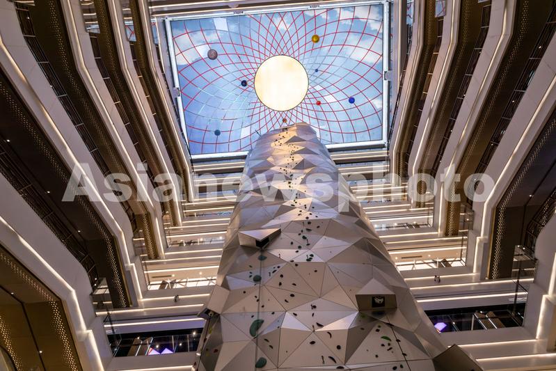 图片说明:2019年12月20日,世界最高室内攀岩项目亮相上海新世界城。