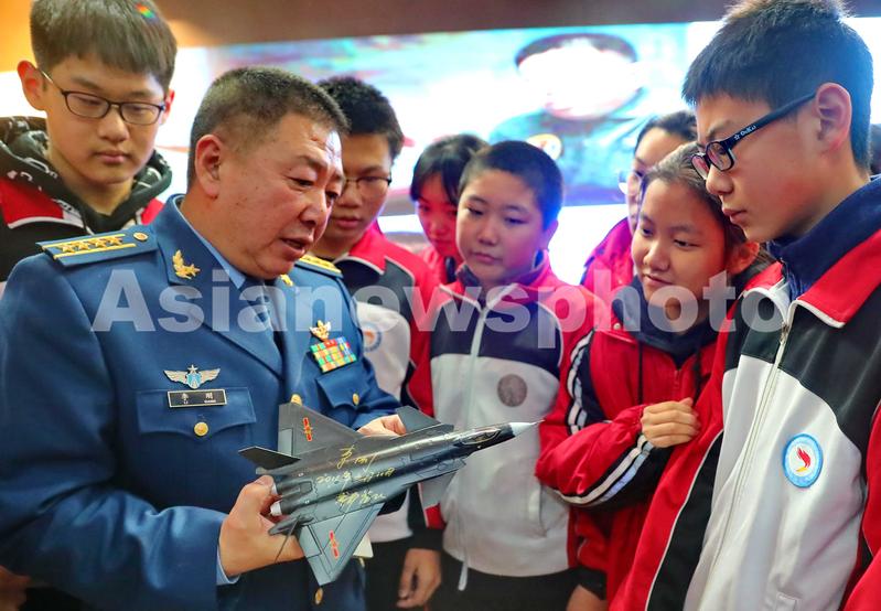 2019年12月30日,歼-20战机首飞试飞员李刚为秦皇岛市第七中学学生讲解国防教育知识。