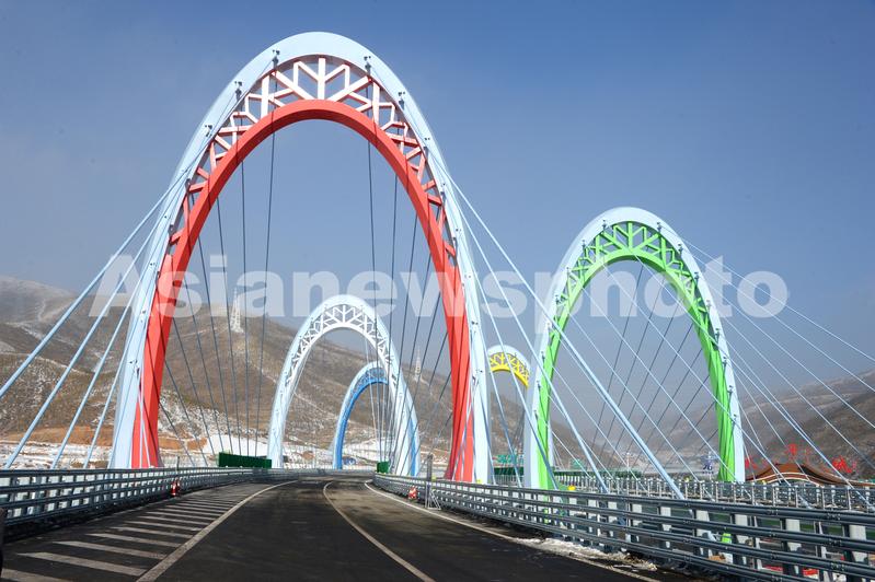 图片说明:2019年12月29日,位于张家口崇礼奥运核心区,被称为“冰雪五环桥”的延崇高速太子城斜拉桥。