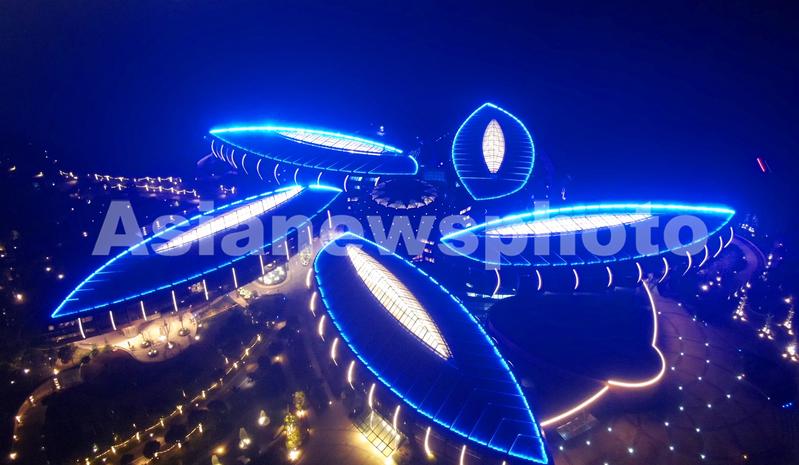 2019年12月27日,航拍上海临港自贸区滴水湖夜色。2019年8月20日,上海自由贸易试验区临港新片区正式揭牌。