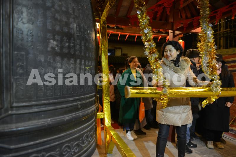 2019年12月31日晚,游客络绎不绝地来到南京鸡鸣寺内烧香、撞钟,参加跨年活动,迎接2020年的到来。