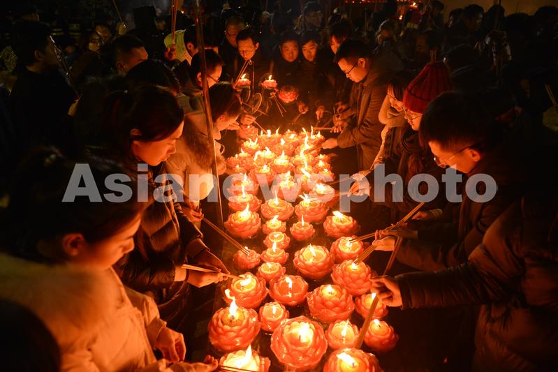 2019年12月31日晚,游客络绎不绝地来到南京鸡鸣寺内烧香、撞钟,参加跨年活动,迎接2020年的到来。