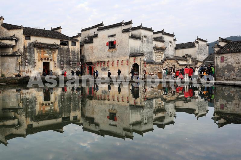 图片说明:2020年1月1日,游客在安徽宏村游览。