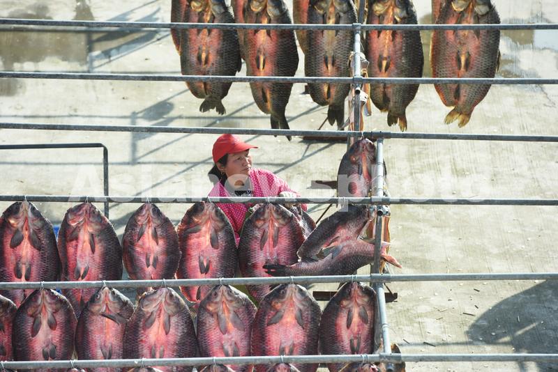 2020年1月6日,杭州三白潭村的水产加工厂,渔民利用晴好天气晾晒鱼干,以供应新春年货市场。