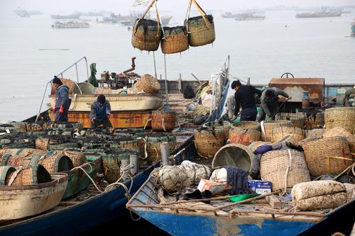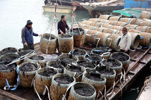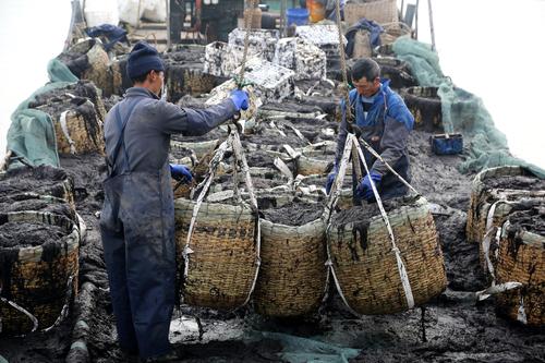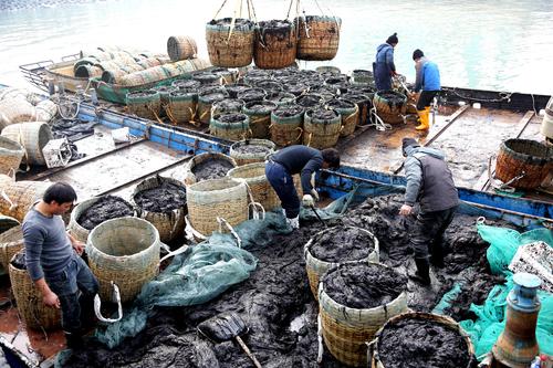 连云港:渔民收获转运紫菜 查看组图