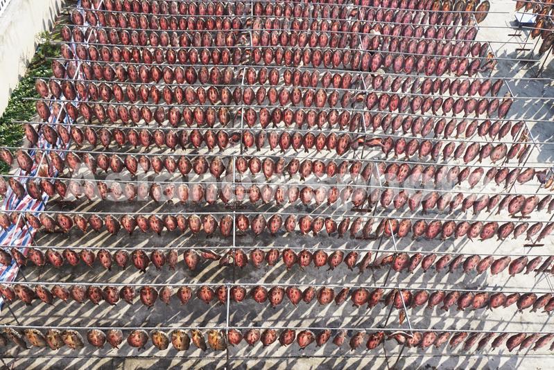 2020年1月6日,杭州三白潭村的水产加工厂,渔民利用晴好天气晾晒鱼干,以供应新春年货市场。