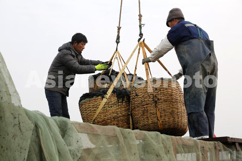 连云港:渔民收获转运紫菜 查看组图