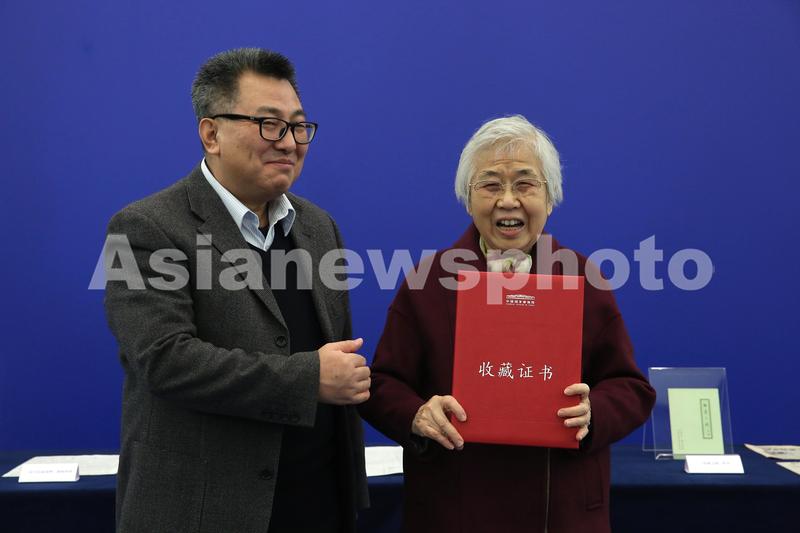 陈堃銶教授(右)收到中国国家博物馆馆长王春法颁发的入藏证书。