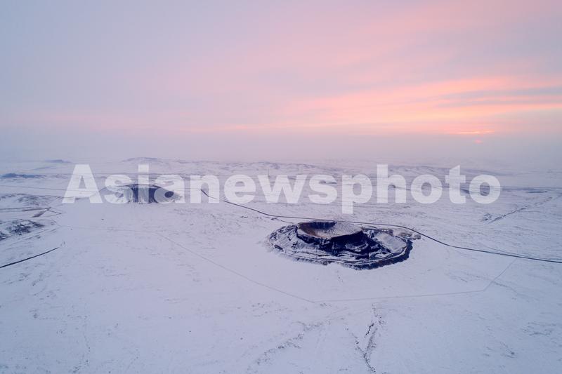 2020年1月16日,航拍乌兰哈达火山群。乌兰哈达火山群位于内蒙古自治区乌兰察布市察哈尔右翼后旗乌兰哈达苏木与白音察干镇之间,由30余座大小不一的火山组成,是内蒙古高原南缘发现的全新世(距今1万年)有过喷发的唯一火山群,分布面积约280平方公里。隆冬时节,乌兰哈达火山群银装素裹。