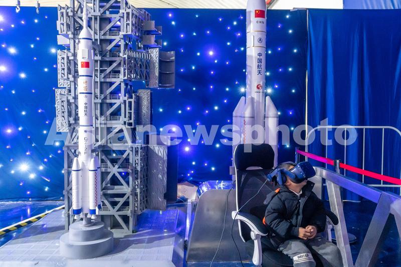 图片说明:2020年1月19日,小朋友使用VR技术感受航天科技。