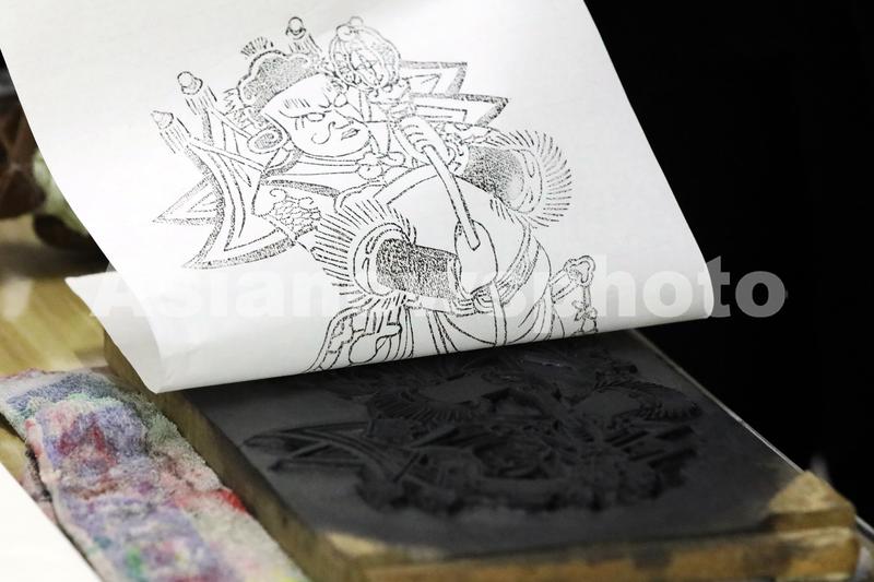 图片说明:1月18日,在四川省绵竹市拱星镇一家年画作坊,李芳福的儿子李道春在印刷木版年画。