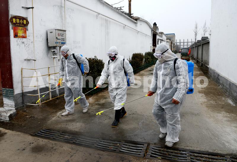 图片说明:2020年2月4日,山东省茌平区七彩公益青年志愿者防疫突击队在信发街道周庄村进行立体喷洒消毒作业。