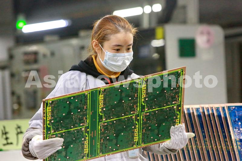 图片说明:2月15日,位于四川省遂宁市国家级开发区的志超科技(遂宁)有限公司,员工在加工TFT-LCD、LED及其他高密度多层线路印刷电路板。