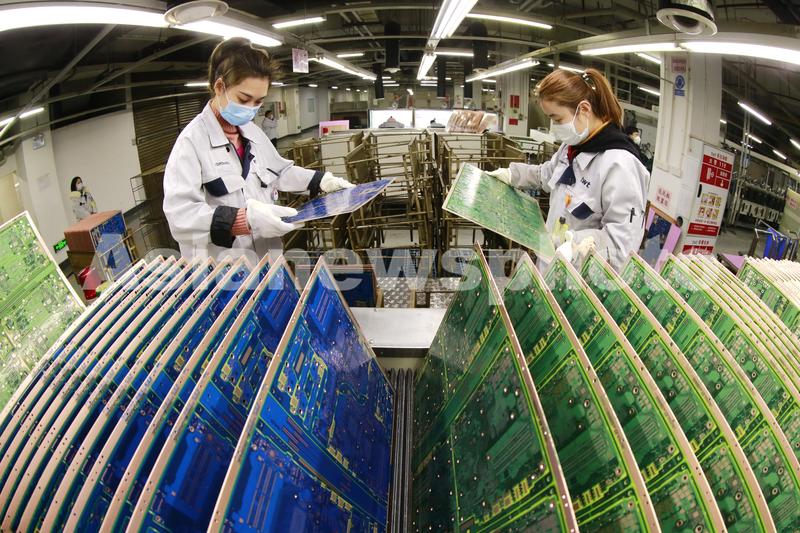 图片说明:2月15日,位于四川省遂宁市国家级开发区的志超科技(遂宁)有限公司,员工在加工TFT-LCD、LED及其他高密度多层线路印刷电路板。