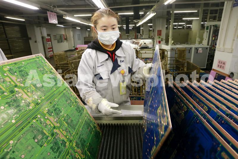 图片说明:2月15日,位于四川省遂宁市国家级开发区的志超科技(遂宁)有限公司,员工在加工TFT-LCD、LED及其他高密度多层线路印刷电路板。