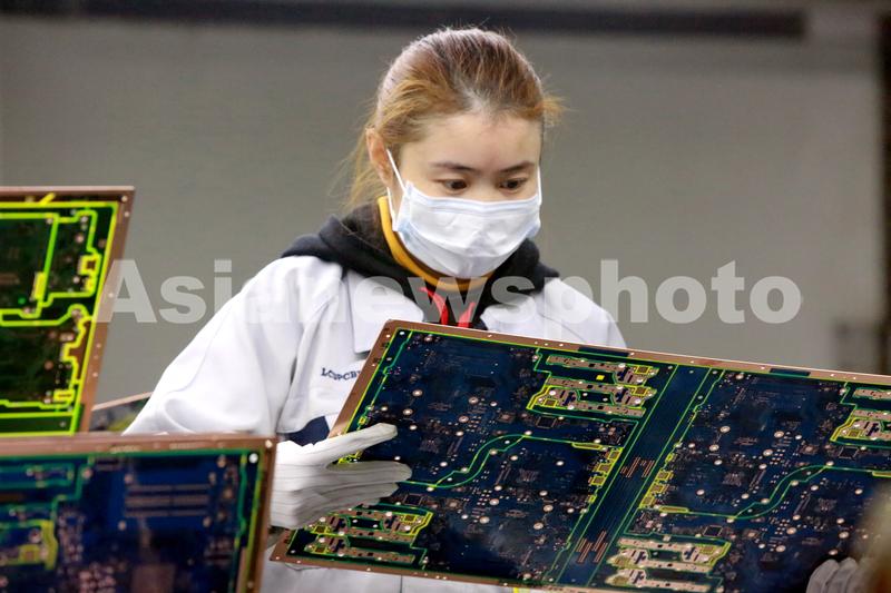 图片说明:2月15日,位于四川省遂宁市国家级开发区的志超科技(遂宁)有限公司,员工在加工TFT-LCD、LED及其他高密度多层线路印刷电路板。