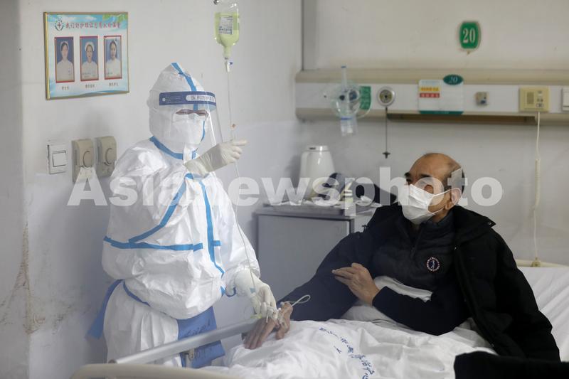 2020年2月17日上午,金银潭医院南二隔离病区,曹珊在病房给患者打针。