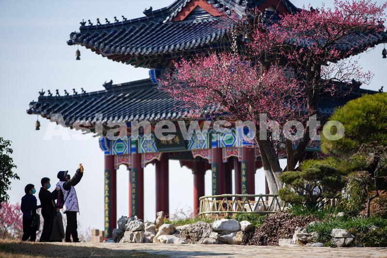 2月20日,游人在南京梅花山观赏梅花。