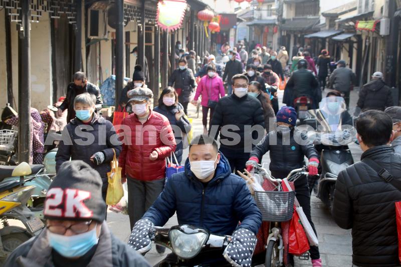 2020年2月23日,市民在百年老街江苏苏州葑门横街上逛街购物。葑门横街作为苏州最具人气的市井老街,为满足市民生活需求,在加强疫情防控的前提下,大部分商户已恢复正常营业,各类生活用品特别是农产品货源丰富,价格平稳,市民都自觉戴口罩有序购买,百年老街葑门横街已逐渐恢复了老苏州原味市井生活。