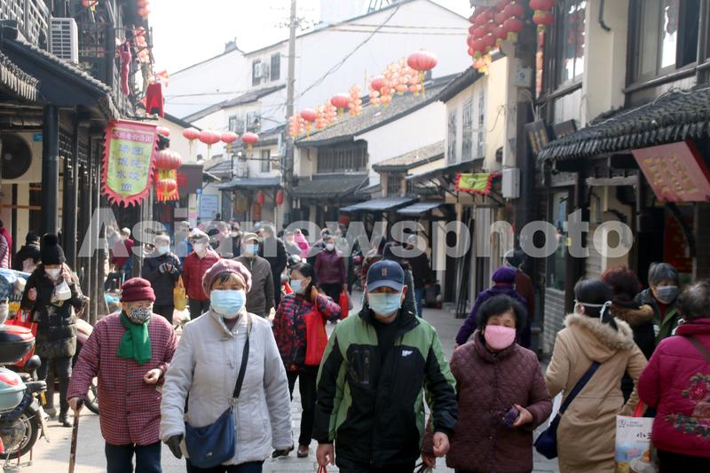 2020年2月23日,市民在百年老街江苏苏州葑门横街上逛街购物。葑门横街作为苏州最具人气的市井老街,为满足市民生活需求,在加强疫情防控的前提下,大部分商户已恢复正常营业,各类生活用品特别是农产品货源丰富,价格平稳,市民都自觉戴口罩有序购买,百年老街葑门横街已逐渐恢复了老苏州原味市井生活。