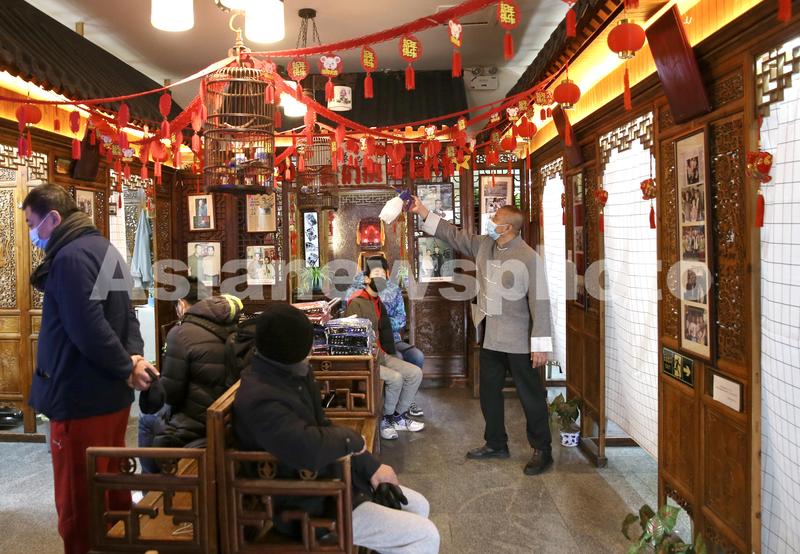 图片说明:“金板寸”理发店等候区,工作人员间隔15分钟消毒一次。