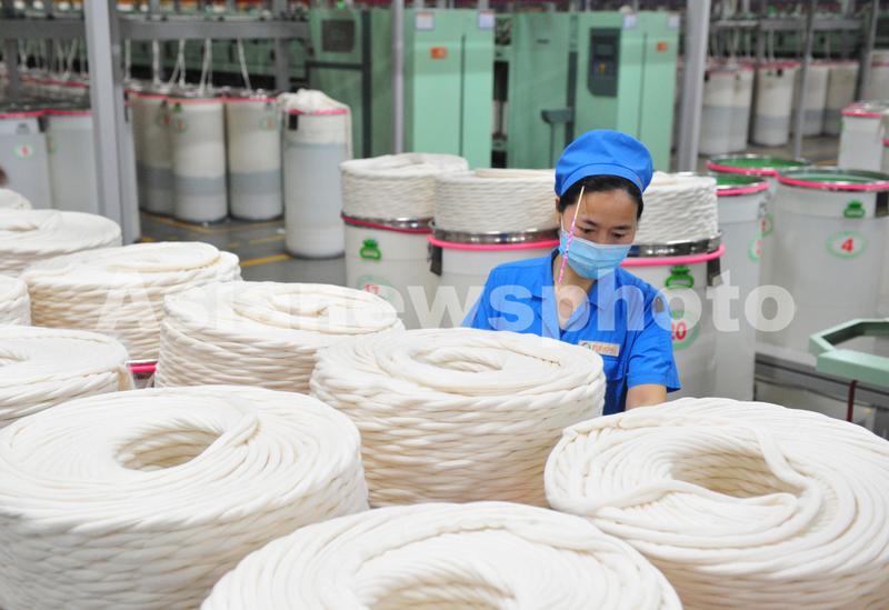 2020年3月17日,位于江苏省徐州市睢宁县经济开发区的江苏天虹智能纺织员工在生产线上工作。该公司在做好疫情防控的同时,已全部复工,实现满负荷生产,产能已经达到年前生产水平, 产销率达到100%。