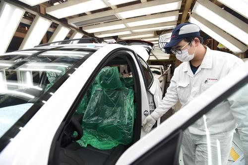 2020年3月16日,武汉,工人在东风本田总装生产线上忙碌。