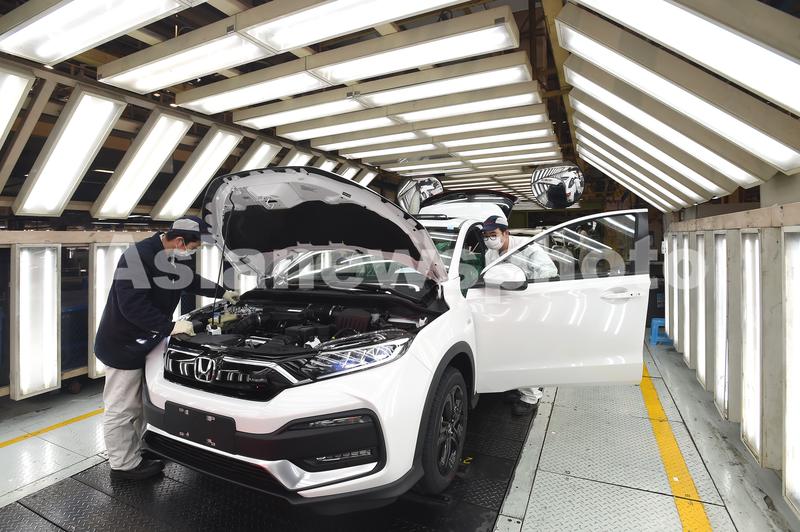 2020年3月16日,武汉,工人在东风本田总装生产线上忙碌。