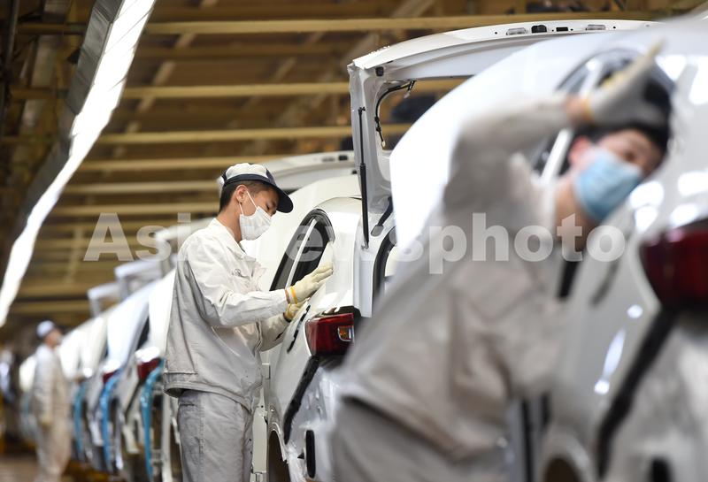 2020年3月16日,武汉,工人在东风本田总装生产线上忙碌。
