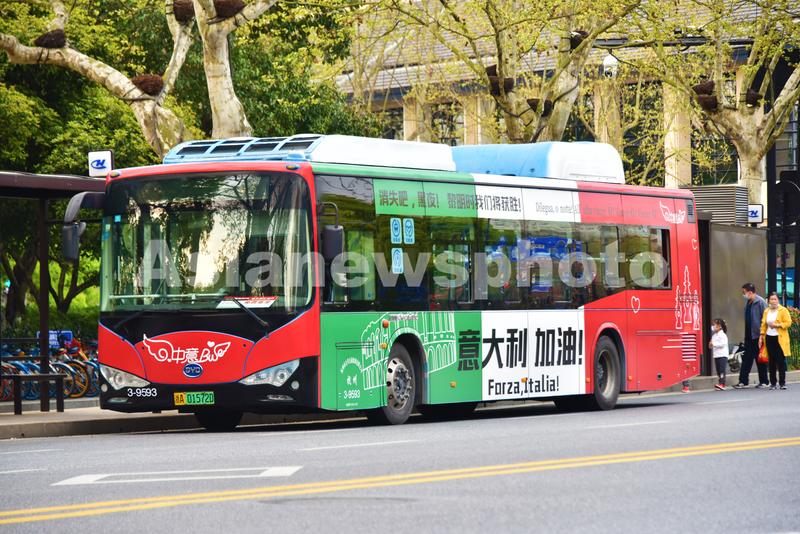 图片说明:为意大利加油打气,杭州1314路公交车全新亮相。