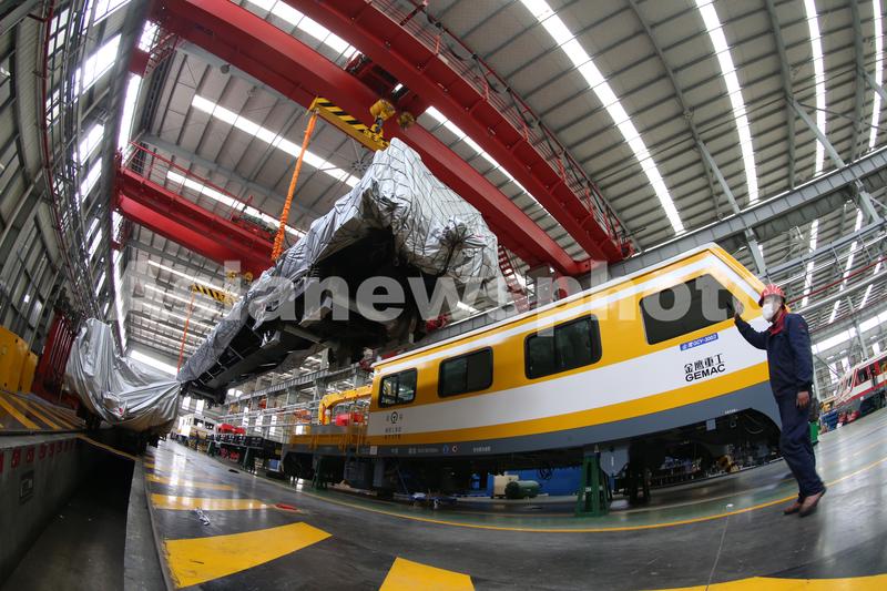 2020年3月30日,工人师傅在吊装pc-40型平车,这5台由3月11日复工的金鹰重工生产的pc-40型平车将从湖北襄阳发往新加坡,用于新加坡地铁建设和维护施工作业。该批平车将于4月1日到达上海军工港,4月15日到达新加坡。