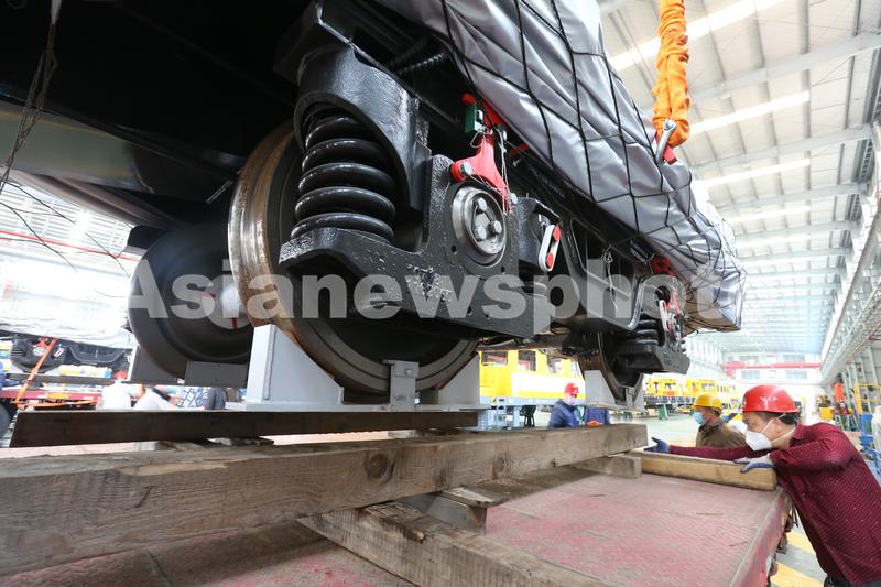 2020年3月30日,湖北省襄阳市,工人师傅正在吊装pc-40型平车。