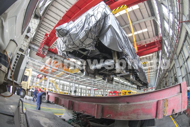 2020年3月30日,工人师傅在吊装pc-40型平车,这5台由3月11日复工的金鹰重工生产的pc-40型平车将从湖北襄阳发往新加坡,用于新加坡地铁建设和维护施工作业。该批平车将于4月1日到达上海军工港,4月15日到达新加坡。