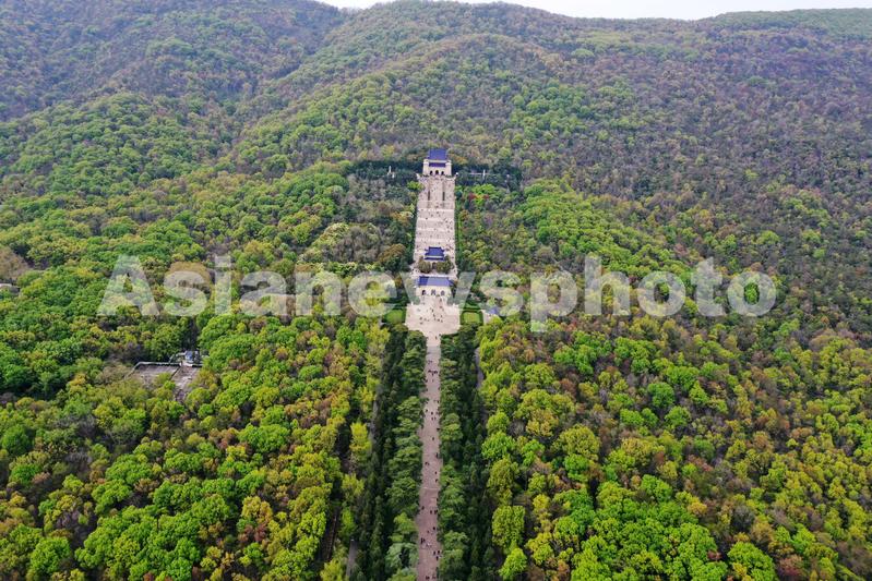 图片说明:2020年4月5日,江苏南京,游客在南京中山陵参观游玩。(无人机照片)