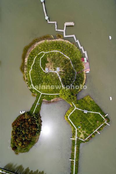 2020年4月6日,游客泛舟在江苏泰州兴化市李中水上森林(无人机照片)。