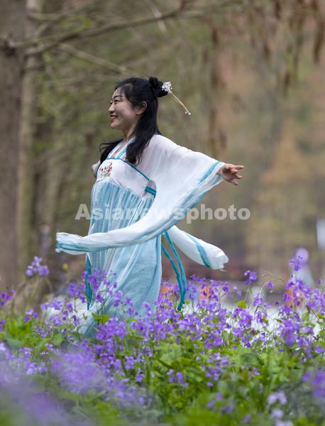 2020年4月6日,游客在江苏泰州兴化市李中水上森林踏青拍照。