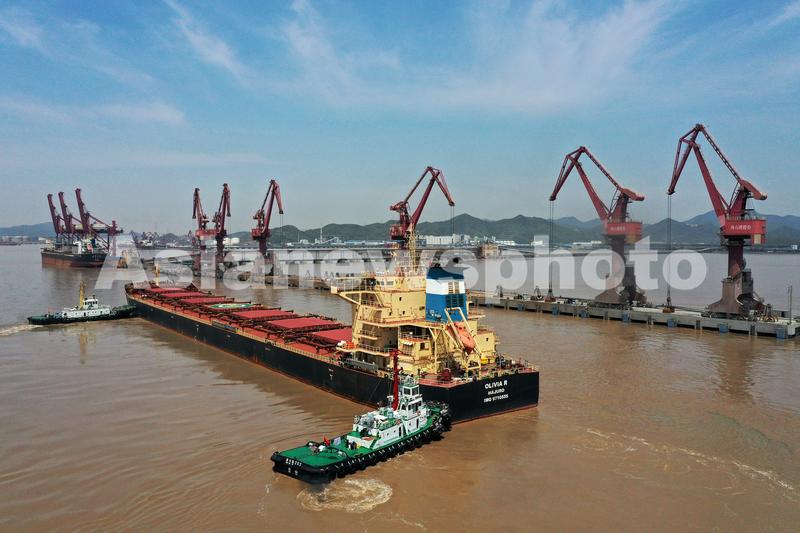 2020年4月8日中午,18万吨级的巴拿马籍“凤凰CORINTHIAN PHOENIX”散货船,在宁波舟山港定海老塘山港区海上减载平台完成作业后刚刚离开,8万吨级马绍尔群岛籍的“奥利维亚OLIVIA R”散货船又靠上了这个平台,计划在此减载20009吨铝土矿后驶往靖江。