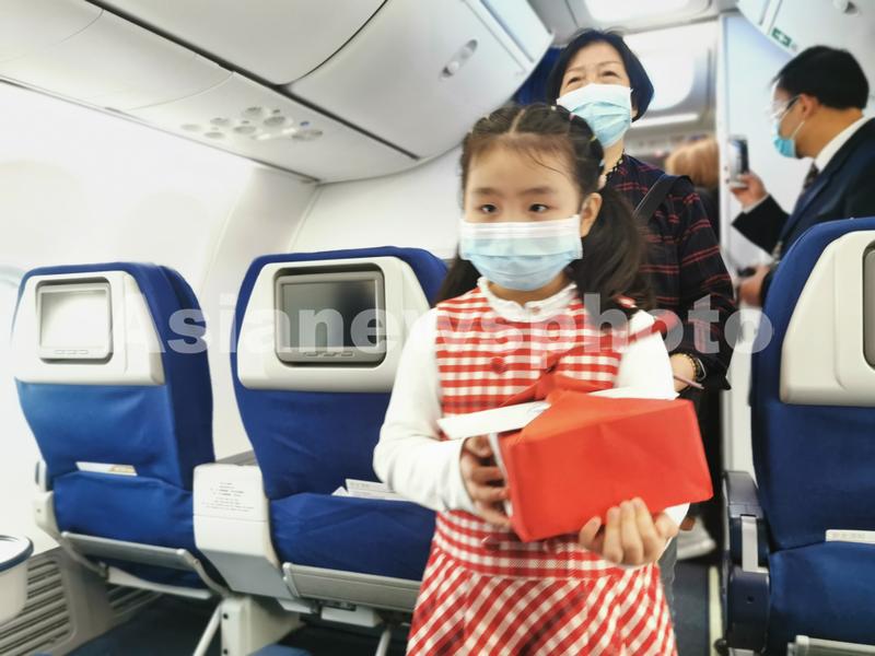 图片说明:首班飞机的乘客获得伴手礼。(东航 供图)