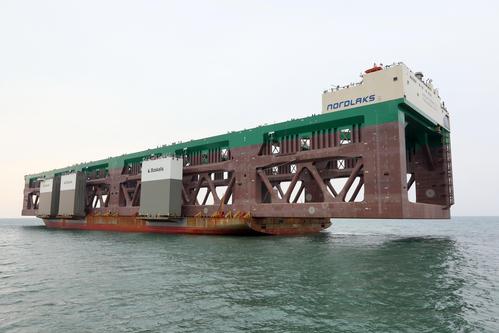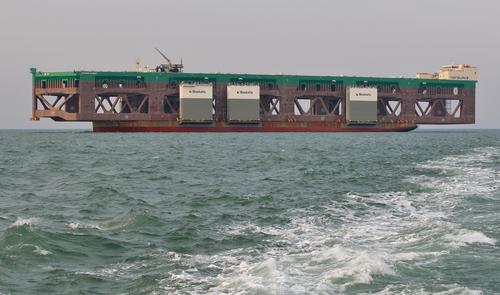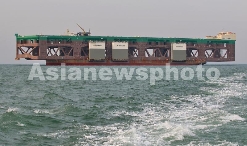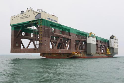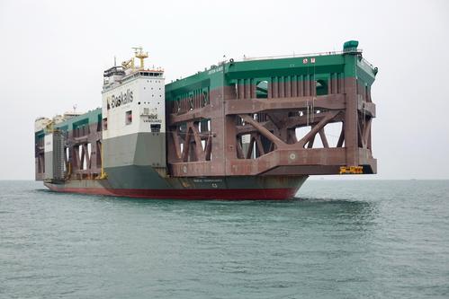 全球最大半潜运输船在山东烟台完成装船作业 查看组图