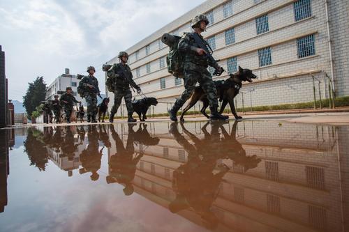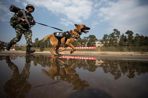 云南昆明:警犬训练强本领 查看组图