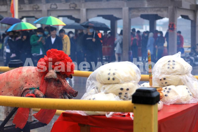 山东荣成:开洋谢洋节因疫情暂停 部分渔民雨中祭海 查看组图