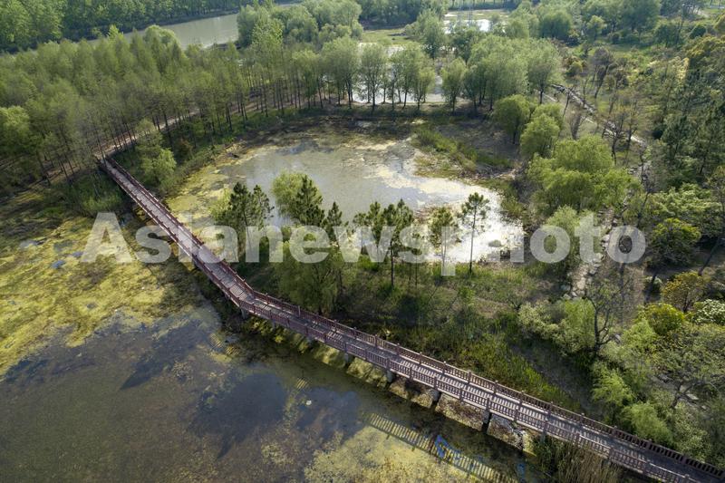2020年4月22日,第51个世界地球日,航拍淮安市古淮河国家湿地公园春意盎然的景象。