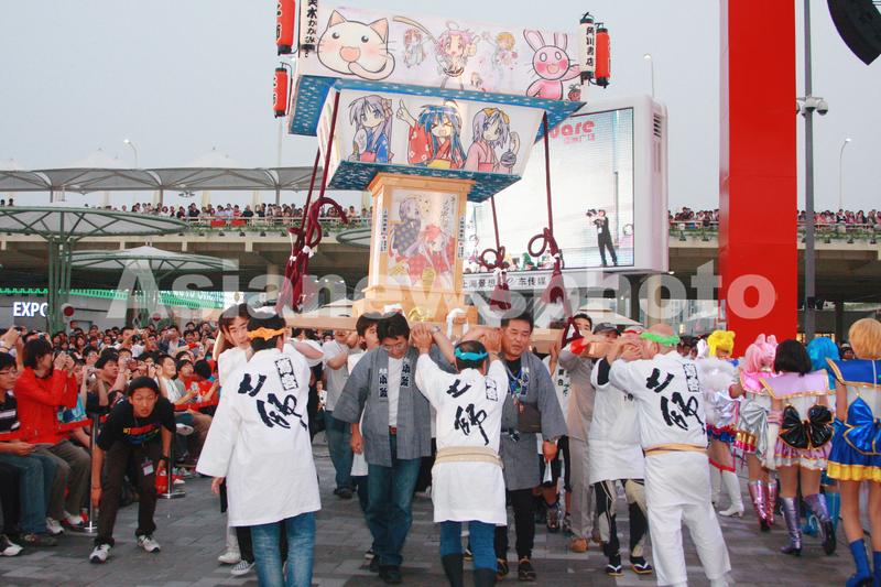 2010年6月13日,中国2010上海世博会十周年回顾:日本著名动漫IP《幸运星》的神舆也千里迢迢来到世博会亚洲广场。